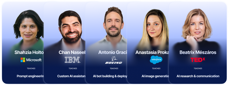 Gain skills and certificates directly from world-class AI practitioners at Google, Microsoft, Amazon, IBM, Tesla, OpenAI... (certificates included)
