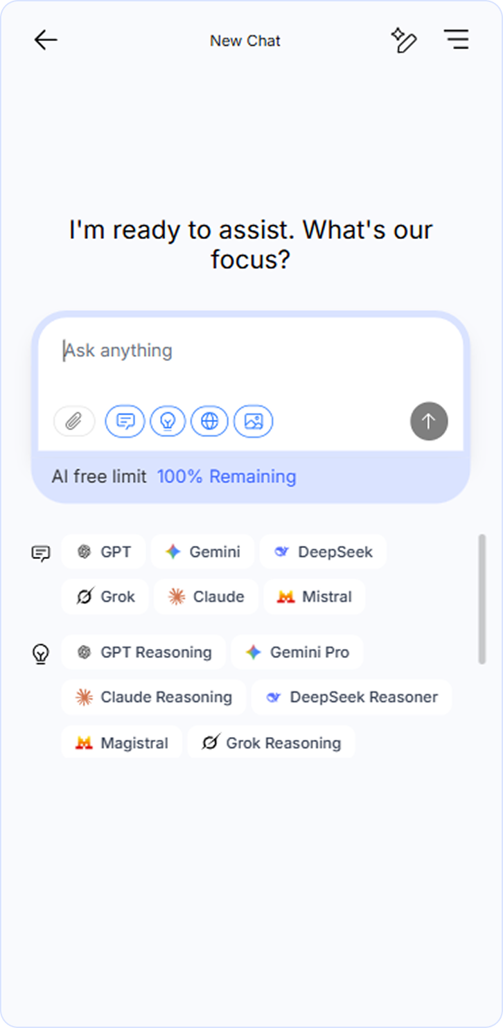 All flagship AI models in one secure workspace. Access GPT, Gemini, Claude, Grok and more - without switching tools. Automate tasks, generate content, and accelerate workflows instantly.