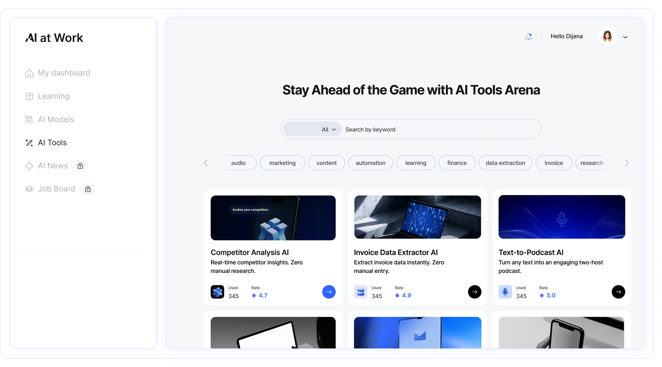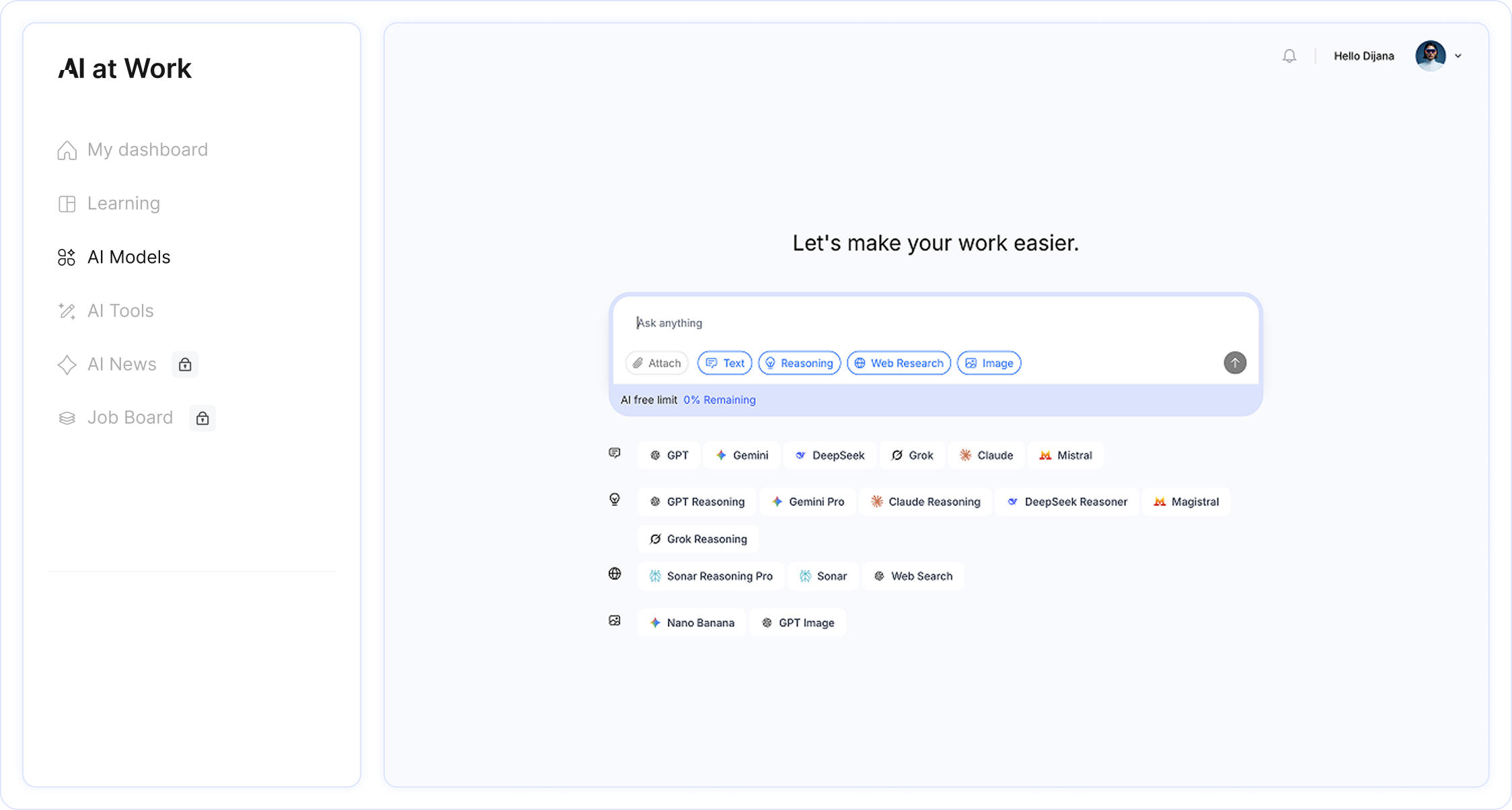 AIatWork is an all-in-one platform that helps you upskill, adapt, and stay relevant at work